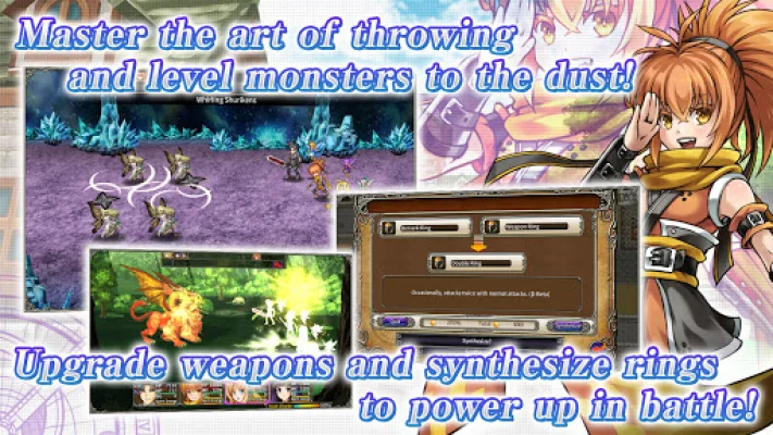 Master the art of throwing and defeat powerful monsters in this fantasy RPG. Use spirits to enhance your magic and upgrade weapons and rings to become even stronger in battle. Build trust with other characters to unlock special endings and challenge the strongest opponents in the battle arena. This app contains ads, but they can be removed through in-app purchases.