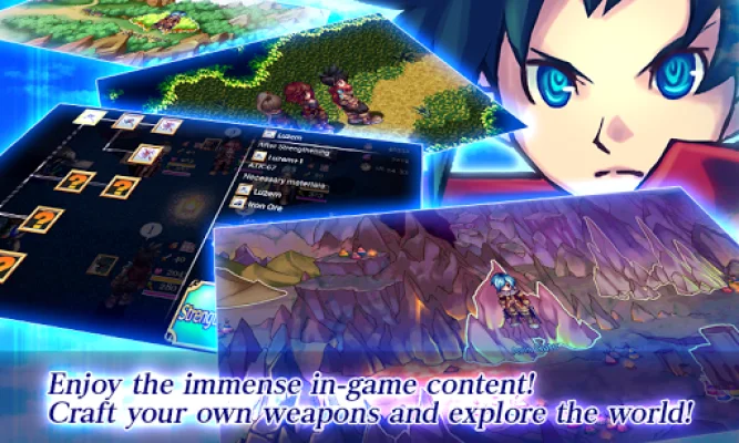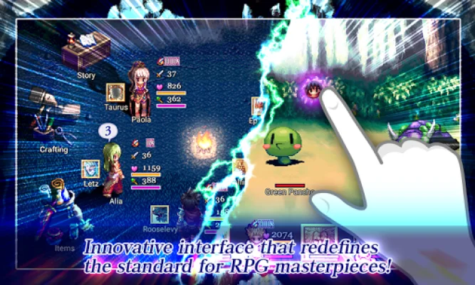 The game features over 40 hours of gameplay, beautiful 8-bit dot artwork and animated turn-based battles, an innovative Command Palette battle system designed for touch screen interfaces, and the ability to contract Guardian Beasts and High Beasts to gain advantages in battles. There is also a Partona (bonds) system between allies and beasts, subquests to complete, and the ability to obtain new skills with Magic Meteorites and craft ultimate weapons.