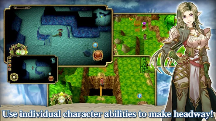 The game features puzzle-solving elements, where players must use their intelligence and wit to navigate through trap-filled dungeons. Each character in the game has unique abilities that can be utilized to overcome obstacles, such as detecting enemies or crossing dangerous pits.