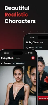 The app also features voice messages, allowing users to hear their characters speak with expressive, AI-generated voice lines. This adds more emotion, immersion, and connection to the conversations. Ruby Chat also learns the user's preferences, remembers details, and adapts over time, making each chat feel more natural and personal.