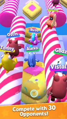 As you progress through the game, the obstacle courses become more challenging, ridiculous, and super fun. You'll choose your guy and clash with up to 60 other players in a race to the finish line. Along the way, you'll have to knock through walls, fall on your face, barrel through obstacles, and blast the crap out of your opponents. It's a chaotic and unpredictable race that will have you laughing your butt off.