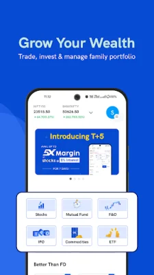 In addition to mutual funds, Rupeezy also offers features for stocks, IPOs, NFOs, options trading, commodities trading, ETFs, and margin trading facility (MTF). The platform provides deep insights into leading stock markets and indices, advanced charts, market depth, and real-time stock market news to help users make informed investment decisions. It also allows for seamless investment in IPOs and NFOs, with detailed analysis and easy application tracking.