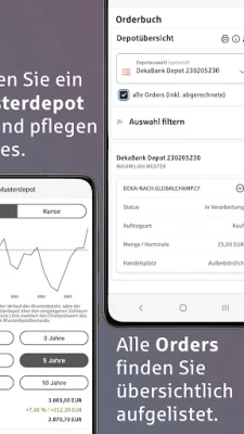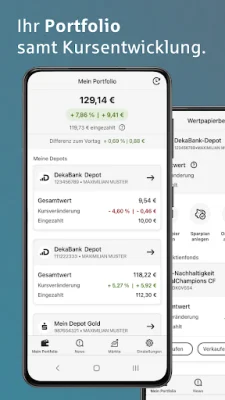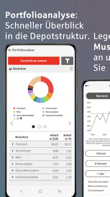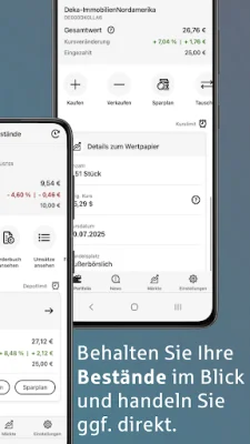 Mit S-Invest können Nutzer beliebig viele Depots einrichten, die bei ihrer Sparkasse oder einem Wertpapier-Partner der Sparkassen unterhalten werden. Dabei werden auch Depots von anderen Banken wie der DekaBank, S-Broker oder bevestor unterstützt. Die Anwendung zeigt das Portfolio mit allen eingebundenen Depots an und ermöglicht eine detaillierte Ansicht der Wertpapierbestände. Auch eine Umsatzliste, Portfolioanalyse, Orderbuch und die Möglichkeit, Musterdepots anzulegen und zu pflegen, sind Teil der Funktionen. Zudem können Nutzer Sparpläne anlegen und verwalten sowie Freistellungsaufträge und Depot-Wecker einrichten.