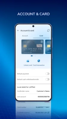 E-Pay also allows users to manage their Sacombank Lao cards directly from the app. This includes the ability to register, block, or unblock cards, as well as view important information such as balance, transaction history, and credit limit. Users can also make credit card payments directly through the app.