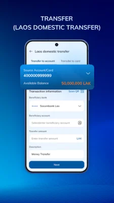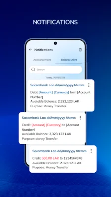 One of the main features of E-Pay is its money transfer capabilities. Users can easily make internal transfers within Sacombank Lao or use the Lapnet transfer system for external transfers. The app also supports QR payments, including the MyQR standard and Lao QR payment, making it easy to make payments at participating merchants. It even offers cross-border payment options for added convenience.