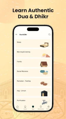 But that's not all, Sadiq also offers a full Quran and Dua collection, with translations and recitations by your favorite Qari. You can even switch to Mushaf Mode to read in Arabic, making Tilawah and memorization easier. With over 300 authentic Sunnah Duas and Adhkar organized into 15+ categories, you can easily explore and learn new Duas for daily life.