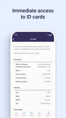 With our app, you can easily access and download your digital ID cards, making it convenient for you to have them on hand whenever you need them. You can also get to know your coverages and receive personalized recommendations based on your specific needs. We also offer a safe driving program in most states, which can help you save money on your insurance premiums.