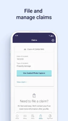 In times of need, our app is here to provide on-the-go help. You can tap to call for roadside assistance or file a claim directly through the app. You can also get real-time updates on the status of your claim and easily contact your claims representative for any questions or concerns. Our app also allows you to upload pictures of any damage and quickly receive a repair estimate. You can even schedule a damage review or request a rental vehicle through the app.