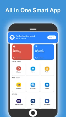 Samsung Smart View Screen Cast is an application that allows you to connect your mobile device to your TV with a user-friendly interface. It is a powerful tool for mirroring and broadcasting your mobile screen onto your TV. With this app, you can easily scan and mirror your TV as long as both devices are connected to the same WIFI network. There is no need to login, simply tap on start and allow the wireless display to connect.