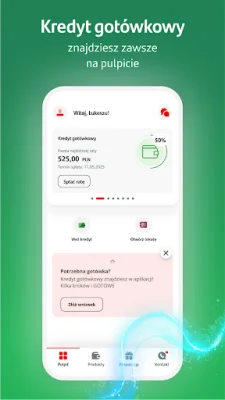 W przypadku posiadania kredytu gotówkowego, konsolidacyjnego, ratalnego lub celowego, aplikacja umożliwia sprawdzenie harmonogramu spłat, ilości rat oraz kwoty pozostałej do spłaty. Użytkownicy mogą również wygodnie spłacać raty kredytu, przeglądać historię wpłat oraz uzyskać dostęp do szczegółów umowy i innych dokumentów.