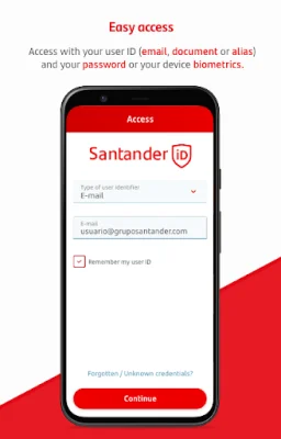 Santander iD is a secure and convenient app that allows customers of Santander Group entities to easily register and manage their accounts. By using the access information provided by your Santander subsidiary and your email, you can quickly set up your account on the app.