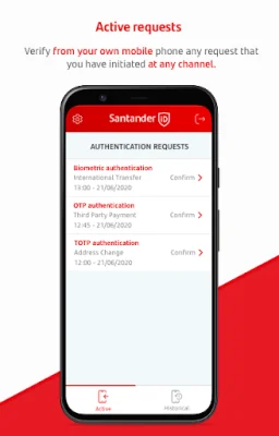 Santander iD prioritizes your safety and convenience. The app offers flexible verification options based on your personal preferences and the type of transaction you are approving. Additionally, your mobile phone will be uniquely linked to your identity, ensuring that no one can impersonate you from another device.