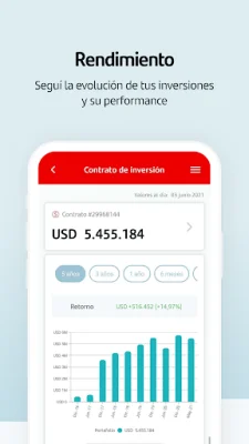 Otra funcionalidad importante de esta aplicación es que te permite consultar toda la información relacionada con tus inversiones. Podrás acceder a tus contratos de inversión, movimientos, balances, tenencias y evolución de tus retornos. Todo esto de manera fácil y rápida, sin tener que acudir a una sucursal bancaria.