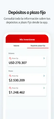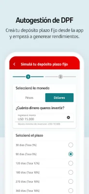 Esta aplicación te permite gestionar tus operaciones financieras de manera rápida y sencilla. Con ella, podrás autorizar o rechazar operaciones de compra y venta directamente desde tu dispositivo móvil. Además, podrás contratar depósitos a plazo fijo de forma 100% digital, eligiendo el monto y plazo que desees sin necesidad de asistencia.