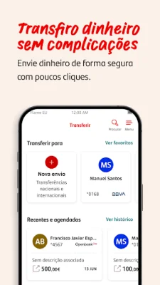 Enviar dinheiro é uma tarefa centralizada na aplicação, permitindo ao utilizador realizar transferências normais e imediatas, agendamentos e utilizar o serviço MB WAY. Com esta funcionalidade, é possível enviar dinheiro de forma prática para números de telefone e verificar quais dos seus contactos também são aderentes ao serviço.