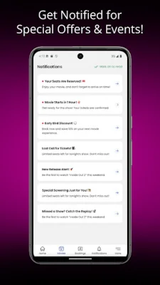 Skip the long lines and secure your seats in advance with reserved seating. Our app also offers quick and contactless entry for a hassle-free experience. Browse through the latest blockbusters, check out what's coming soon, and watch trailers all in one place. Plus, receive notifications when tickets go on sale and exclusive offers become available.