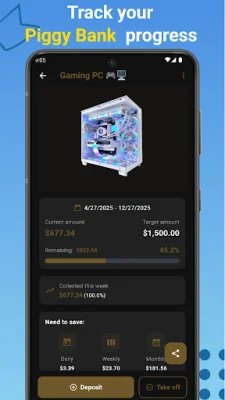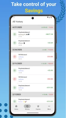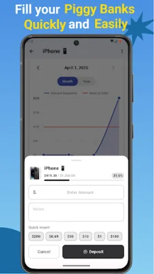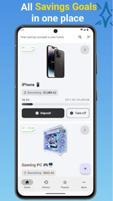 In addition to these features, the app also acts as a digital piggy bank, allowing you to track every deposit manually or set reminders to add funds. It also keeps a detailed record of every transaction, helping you understand your financial habits better. And with its offline mode, you can access your savings goals anytime, even without an internet connection.
