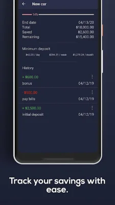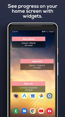 Do you struggle with managing your finances and saving money? Look no further, Savings Tracker is here to help! Our app focuses on the basics of setting goals, providing reminders, and tracking your progress. It's perfect for all ages, whether you're just starting to save or already have a savings account. Even if you're using a simple piggy bank, every little bit counts towards your financial goals. Our app is designed to be simple and user-friendly, without all the complicated features of other financial planner apps. We understand the importance of keeping your financial data safe, which is why we offer a Pattern Lock to prevent others from accessing your information. With Savings Tracker, you can easily keep track of how much you've saved and how much more you need to reach your goals. You can also set reminders on a daily, weekly, or monthly basis to help you stay on track. And the best part? Our app can be used offline, so you don't need a network connection to access your information. For those who want their data to be synced across devices, we offer data synchronization. And for a more personalized experience, you can choose from custom themes and colors (some features require premium). In addition to our app's features, we also provide tips on how to save money, such as calculating your income and budget, starting small with your goals, and using a physical piggy bank for coin saving. We even offer the option to add a picture of your goal, like a dream vacation, to help motivate you. While there are many websites with articles on saving money, we hope our mini financial planner and money-saving app can make the process easier for you. Our app is available in multiple languages, and we welcome any feedback or suggestions for improvement. And if you enjoy using our app, please consider leaving a rating and review to help others discover it as well. Together, we can all learn and practice effective money-saving habits.