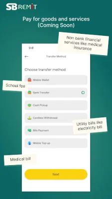But that's not all, we go beyond traditional remittance services by offering Value Added Services (VAS). This means that you can now use our app to pay for goods and services like utility bills, medical bills, and school fees from abroad to your home country.