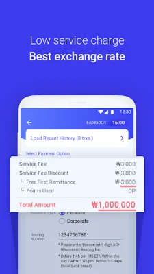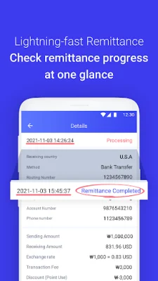 SBI Cosmoney offers various receipt options, including bank accounts, ATM cards, cash pick-ups, and mobile wallets. This allows users to choose the most convenient option for their family to receive money. The app also boasts fast remittance services, available 365 days a year, 24 hours a day. Users can easily send money at their fingertips, with real-time remittance status available within the app.