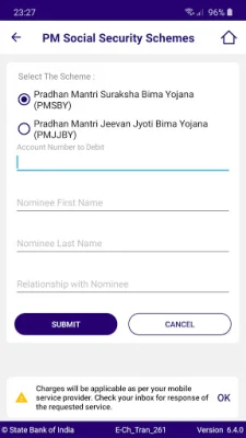 Mobile top-up/recharge can be done for the registered mobile number by sending an activation code received on the handset. Users can also subscribe to Prime Minister Social Security Schemes through this app. The ATM-Branch Locator feature allows users to find the nearest SBI branches, ATMs, Cash Deposit Machines, and Customer Service Points. They can also get directions to these locations.