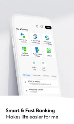 The new homepage of SC Mobile offers a convenient and efficient way to manage your accounts. With just one glance, you can easily view the status of all your accounts, keeping you up-to-date with your finances. The homepage also features shortcut keys, allowing you to access daily financial management functions with ease.