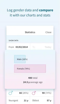 Data logging can be turned on or off, depending on the user's preferences and state laws. When turned on, Scannr can create informative charts using the recorded data. These charts can be further refined by selecting a start and end date. The only data that is stored is aggregated gender and age data, and the scanned data never leaves the user's mobile phone unless they choose to send it to a custom URL.