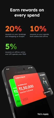 Scapia also provides airport benefits beyond just lounge access. Users can enjoy flexibility at airports with benefits across dining, shopping, spa, and lounges. This includes up to ₹1,000 in rewards and lounge access at domestic airports for a monthly spend of ₹20,000, as well as up to ₹2,000 back at international terminals in India for eligible flight bookings worth ₹50,000 or more made through the app.