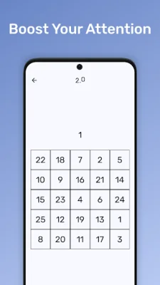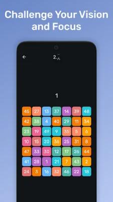 The Schulte Table exercise involves quickly finding and tapping numbers in a grid, starting from 1 and going up to the highest number, as fast as possible. This activity is designed to enhance various cognitive abilities, including focus and attention, processing speed, and peripheral vision. These are essential skills that can benefit people of all ages, making the app suitable for kids, adults, and seniors alike.