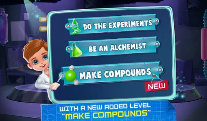 The second level, "Be an Alchemist," challenges users to mix elements and create new compounds. Each combination is like a puzzle to solve, and users can use hints or undo their steps if they get stuck. This level is a fun way to learn about different elements and their properties.