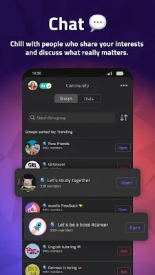 In addition to academic support, Scoolio also offers a platform for networking and making new friends. You can join chat groups based on your interests or location, start private chats, and even send likes or digital gifts. The app also has a career check feature, where you can explore different career fields and job postings through video content and connect with companies directly.
