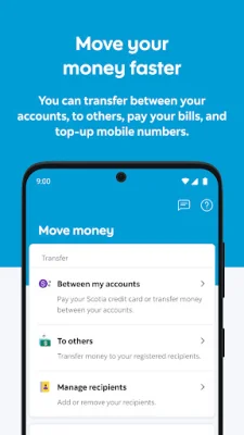 With this app, you can easily transfer money between your accounts or to others with just a swipe. You can also add or delete transfer recipients, making it convenient to manage your finances.