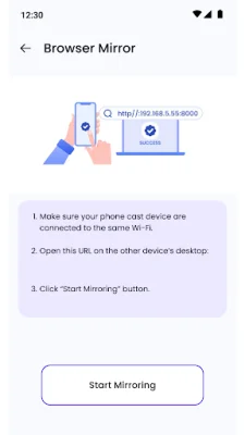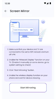 Screen Cast - Mirror For TV is an innovative application that allows you to easily mirror your phone or tablet display to your TV without the need for any cables or additional devices. With just a few taps, you can instantly connect your device to your TV and enjoy a seamless mirroring experience. This feature is perfect for sharing photos, watching videos, or even presenting at work. One of the key features of Screen Cast - Mirror For TV is its wide compatibility. It works with all types of TV boxes, ensuring a reliable connection every time. This means that no matter what type of TV you have, you can trust that this app will work seamlessly with it. This eliminates the frustration of trying to find the right cables or adapters to connect your devices. In addition to mirroring your phone or tablet to your TV, Screen Cast - Mirror For TV also offers a unique browser mirror feature. Simply paste the link provided by the app onto any browser and you can easily mirror your phone on other device's browsers. This makes web browsing on bigger screens even more convenient and enjoyable. With Screen Cast - Mirror For TV, you can expect high-quality streaming with no lag. This app allows you to stream videos, music, and photos in HD, providing a smooth and immersive experience on the big screen. Say goodbye to choppy or pixelated videos and hello to a seamless streaming experience. One of the best things about Screen Cast - Mirror For TV is that it requires no setup. Unlike other mirroring apps that may have confusing configurations or technical steps, this app makes it easy for anyone to connect their device to their TV. This means you can start enjoying your favorite content on the big screen in no time. So why should you choose Screen Cast - Mirror For TV? This app stands out for its ability to deliver a seamless connection to a wide range of devices. Whether you're casting a movie, sharing photos, or presenting at work, you can trust that this app will provide high-definition, lag-free streaming with easy-to-use controls. With its broad compatibility and convenient remote control feature, Screen Cast - Mirror For TV gives you full command over your multimedia experience.