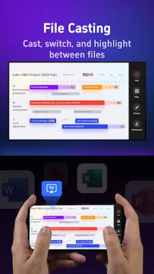 In addition to screen mirroring, vimnicast also offers interactive file casting, making it perfect for work and collaboration. You can easily cast and switch between multiple documents, such as PDFs and Word files, and use on-screen tools like a pen or laser pointer to annotate and highlight key points during presentations. The real-time file switching feature allows for a smooth and efficient workflow.
