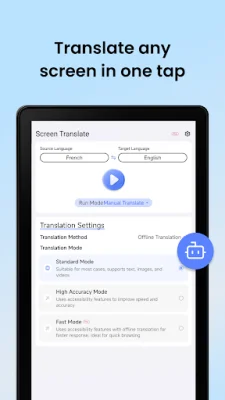 Screen Translate also offers three intelligent translation modes to adapt to various needs. These include Standard Mode for efficient text detection and translation, High-Precision Mode for highly accurate and complete translations, and Ultra-Fast Mode for lightning-fast and seamless translation. The app also supports over 100 languages for mutual translation, making it a versatile tool for a wide range of use cases such as chat translation, reading translation, gaming/movie subtitle translation, and image text translation.