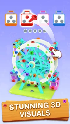 With infinite challenges, each level presents a unique and enjoyable experience. From tiny screws to massive bolts, every 3D puzzle is different and will keep you entertained in short casual game sessions. As you progress through the game, you will become a master of screw games. Every bolt you unscrew proves your logic and helps you dominate the screwdom 3D. Don't let a bolt stop your progress and solve every puzzle to explore the entire world of screw games.