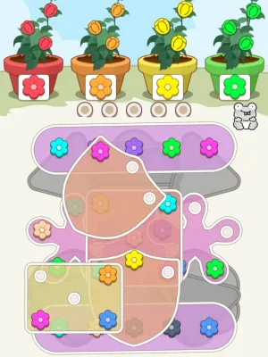 The "Screw Garden" is a unique and calming game that allows players to relax and unwind while challenging their puzzle-solving skills. The main objective of the game is to click on the flower screws to remove them from the board. The ultimate goal is to match three flowers of the same color to complete the elimination and remove all the boards to pass the level. This simple yet addictive gameplay is perfect for players of all ages and skill levels.