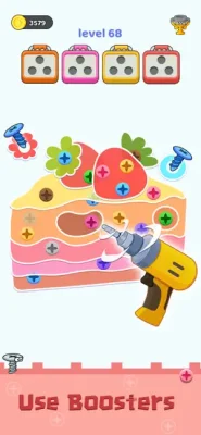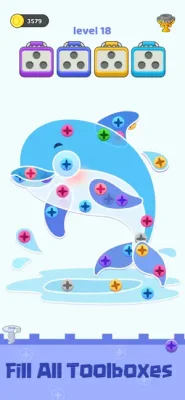 The gameplay is simple and easy to understand. Players need to tap on the screen to unscrew the nuts and bolts. However, they must strategically plan their moves to unscrew all the nuts and fill in all the toolboxes to win. This adds an element of strategy to the game, making it more engaging and challenging.