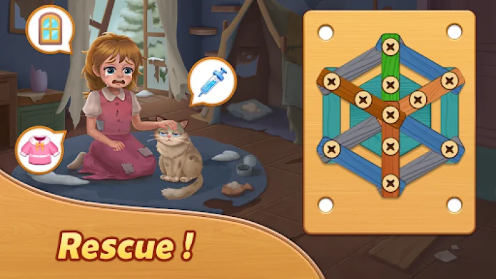 Dive into a heartwarming family story where you can use your creativity to help a lovely family in need. Their house is broken and rooms are jammed, but with every twist of a screw, pull of a pin, and move in a wood puzzle, you can save the family, rescue the girl, and rebuild their home. Earn stars for each puzzle and use them to restore rooms, decorate furniture, and bring happiness back to the family. This game offers a fresh take on classic nuts and bolts gameplay, challenging your logic and problem-solving skills in realistic physics-based puzzles. With hundreds of levels, clever challenges, and satisfying feedback, this game will keep you entertained for hours.