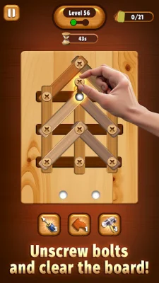 Screw Wood Puzzle - Nuts & Bolts promises unlimited fun with its addictive gameplay. From the beginning to the end, players will be drawn into this exciting world of wooden screw puzzles. The game offers a unique and challenging experience that will keep players hooked for hours on end.