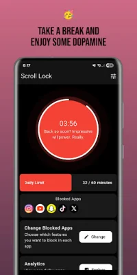 The app empowers users to unlock extra time and improve their focus, allowing them to chase their goals, explore hobbies, and live more intentionally without digital distractions. It offers a solution to the addictive nature of scrolling through short videos, allowing users to pick up their phone with purpose and break the cycle of mindless scrolling.