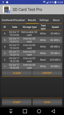 For professional users, the app offers the ability to adjust the size and number of files used in the test. It is important to note that if the SD card uses a FAT/FAT32 file system, the maximum file size is 4 GB, and users should use more files instead of increasing the size. If larger files are desired, the SD card can be formatted to exFAT. Additionally, the app requires a minimum of 4 GB of read or written data and 10 seconds of run time for accurate results. Users can easily share their results with a one-button method.