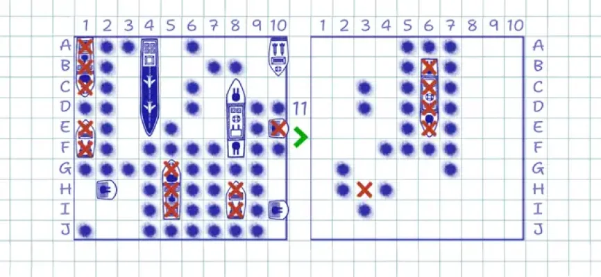 The classic version of the popular game "Sea Battle" is now available for you to play. You can choose to play against a smartphone bot or challenge a real opponent online. The game is designed to resemble a traditional game played on a checkered paper sheet. The objective of the game is to strategically sink the entire enemy fleet.