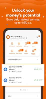 One of the main advantages of using SeaBank is the high interest earnings of up to 4.5% p.a. that are credited daily. This means that your money can grow faster compared to traditional savings accounts. Additionally, you can make free transfers via InstaPay and PESONet, saving you time and money on transaction fees.