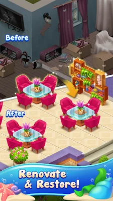 Get ready to embark on a fun and challenging journey of merging puzzles in order to gather resources and create a toolbox of essential items for your dream city renovation. With a wide array of decorating styles to choose from, you can bring your design ideas to life and unlock unique areas as you expand your city. Use the collected tools to repair and renovate every corner, while encountering new characters, unraveling untold stories, and unveiling astonishing secrets along the way. As you progress through the game, you will enjoy numerous colorful and addictive puzzle levels, all while following a captivating storyline and experiencing the triumphs and joys of becoming a pro home designer. This game is not only a great way to de-stress and unwind, but it also provides a fun way to train your brain with relaxing gameplay and new design challenges. To play, simply combine and merge various beautiful items to restore broken furniture and give them back their glory. Solve merging puzzles and collect coins and stars to unlock new elements and expand your collection. You can also strengthen your merging skills with exciting power-ups, using their advantages to progress faster in the game. So why wait? Are you ready to embark on this happy merge decor game? Play Seaside Cafe for free now and stay tuned for more exciting levels to come. Let your design talents shine and receive rewards for your creative home design ideas. Be original and SEO-oriented while playing this game and have fun!