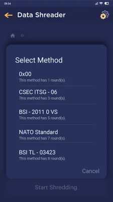 Secure Wipeout uses data shredding algorithms that have been developed through decades of research and are specifically designed for permanent data deletion. These algorithms include British HMG IS5, US DoD 5220.22, German VSITR, Russian GOST P50739, NIST 800-88, Zero Filler, One Filler (Secure Erase), and Random Filler (Pseudo Random Numbers). The app does not claim to have invented these algorithms, but rather utilizes them for the benefit of its users.