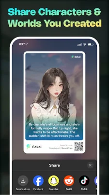 Sekai is an innovative application that allows users to fully express their creativity by designing their own anime characters. From hairstyles and outfits to personality traits, users have complete control over every aspect of their character's appearance and personality. This unique feature allows users to bring their ideal anime characters to life and showcase their imagination.