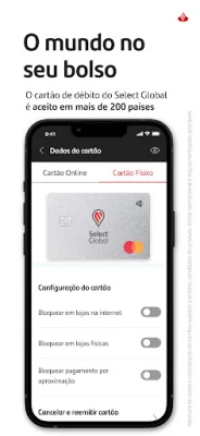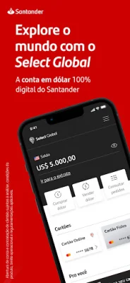 Além disso, a Select Global também oferece gestão, segurança e praticidade na palma da sua mão. Com o aplicativo, você pode acessar facilmente utilizando os mesmos dados de acesso do seu App Santander, converter seus reais em dólares instantaneamente e personalizar seu limite de uso diário.