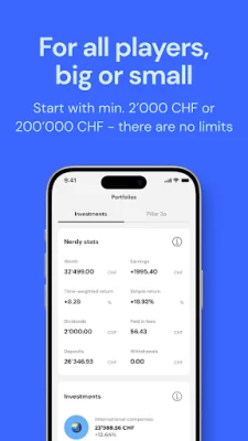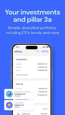 Opening an investment account is made simple with Selma's video call verification process, handled by leading experts IDnow. Users can also add their pillar 3a account with just a few clicks. Selma offers low starting amounts for investing, with a global investment plan starting at 2,000 CHF and a pillar 3a starting at 500 CHF.