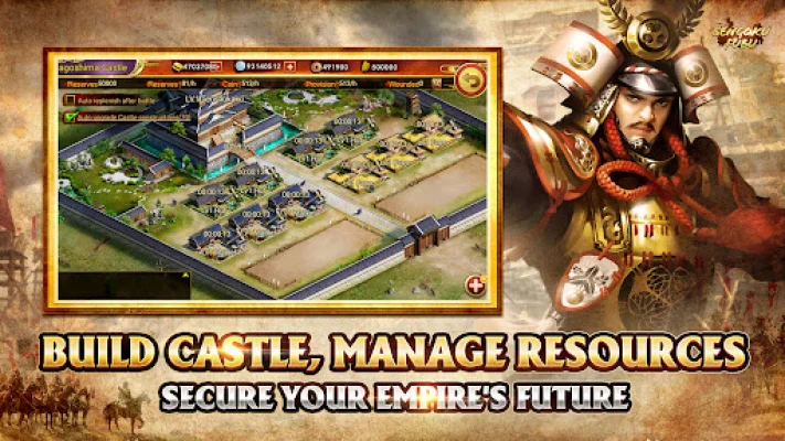 Players must use their powerful heroes, each with their own unique skills and abilities, to create strong officer teams and conquer the map. They can also deploy different types of troops to counter their enemies. The game allows players to battle like an emperor and even become the emperor themselves, raising their army and mastering strategy to rule the battlefield and live out their own fantasy in the Sengoku period. They must also defend their cities and protect their resources to win the match and establish their own state. Additionally, players can build schools to help their men and strengthen their forces.